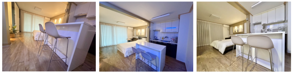 화이트와 우드 톤이 조용히 어우러진 스튜디오 타입의 아파트입니다.
