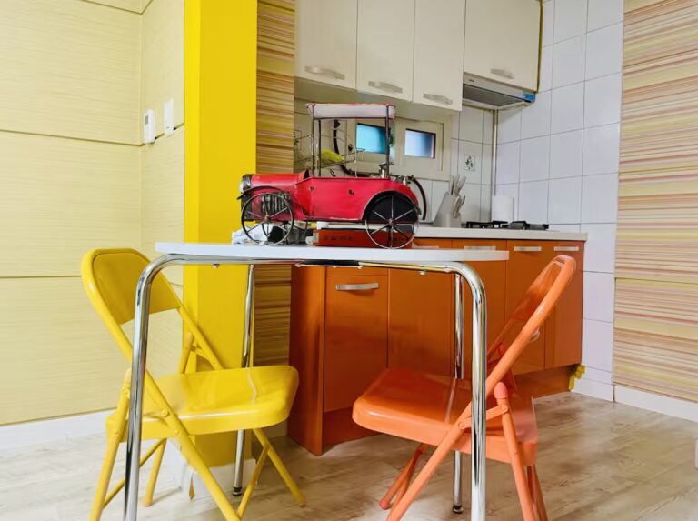 Set down the fatigue of the day in a calm atmosphere in a space decorated in mint and light gray tones. Take a break from your busy daily life while h